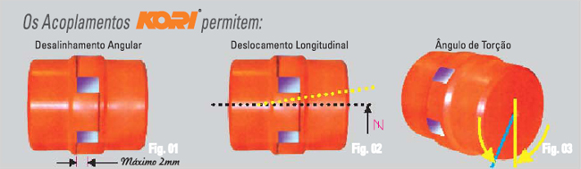Além de absorver os impactos proporciona uma grande elasticidade torcional. O Acoplamento KORI® pode trabalhar na posição horizontal e vertical, podendo ser adaptado em Equipamentos Industriais, Implementos Agrícolas etc...
